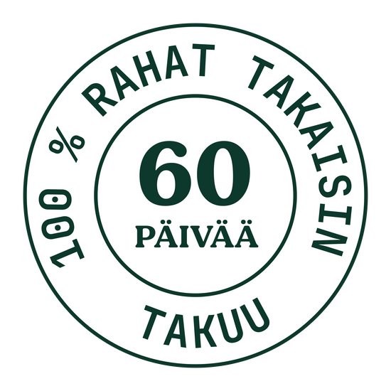60 päivän 100 %:n rahat takaisin -takuu koskee myös avattuja pakkauksia - ja alle 2 % käyttää sitä!